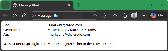 ● E‑Mail‑Inhalte als HTML in die Dateianlage verschieben