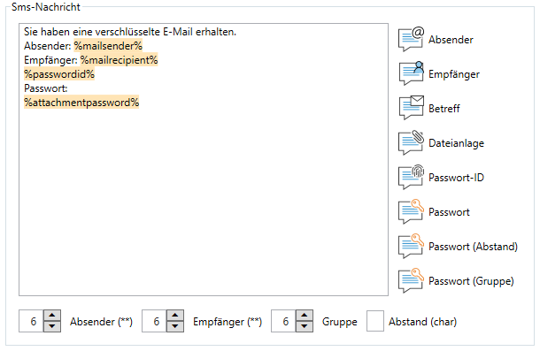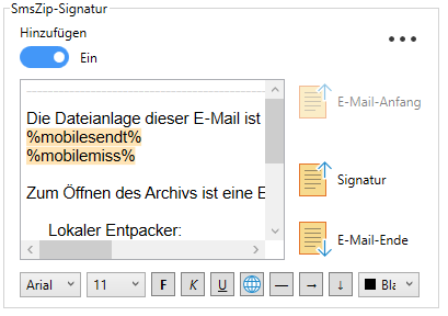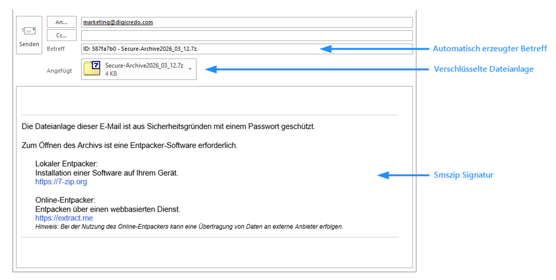 ● Betreff, SmsZip-Signatur und Anlagenname lassen sich individuell anpassen