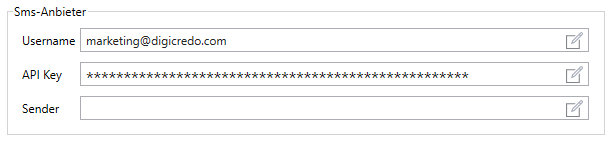 ● Für SMS-Provider die nur den API Key benötigen, wird der Wert auf False gesetzt