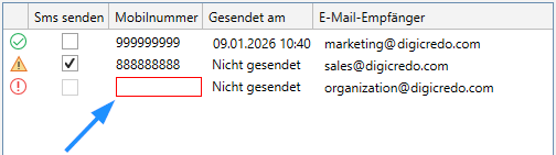 ● Wenn ein Kontakt keine Mobilnummer enthält, wird ein Fehler angezeigt